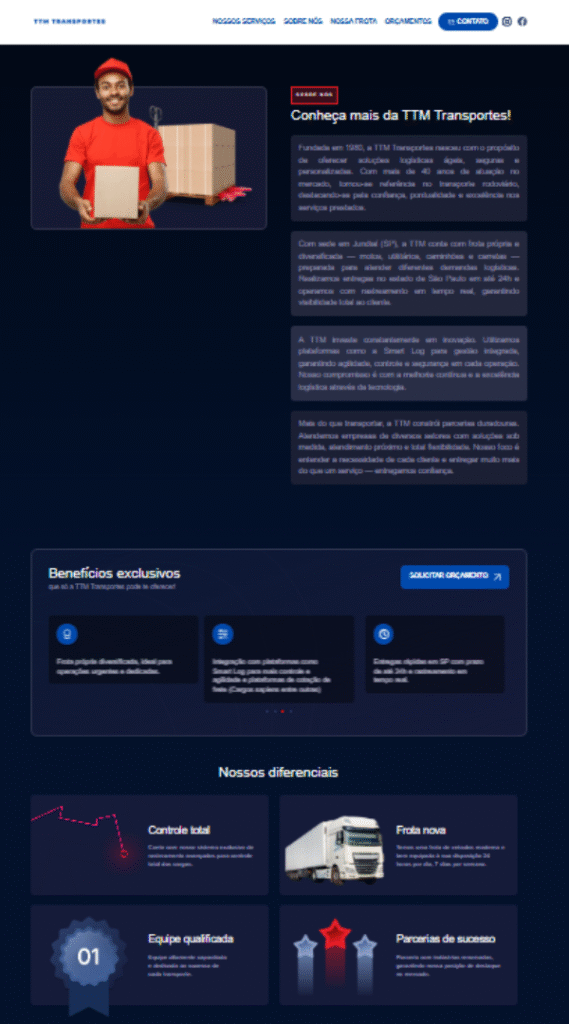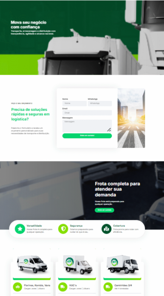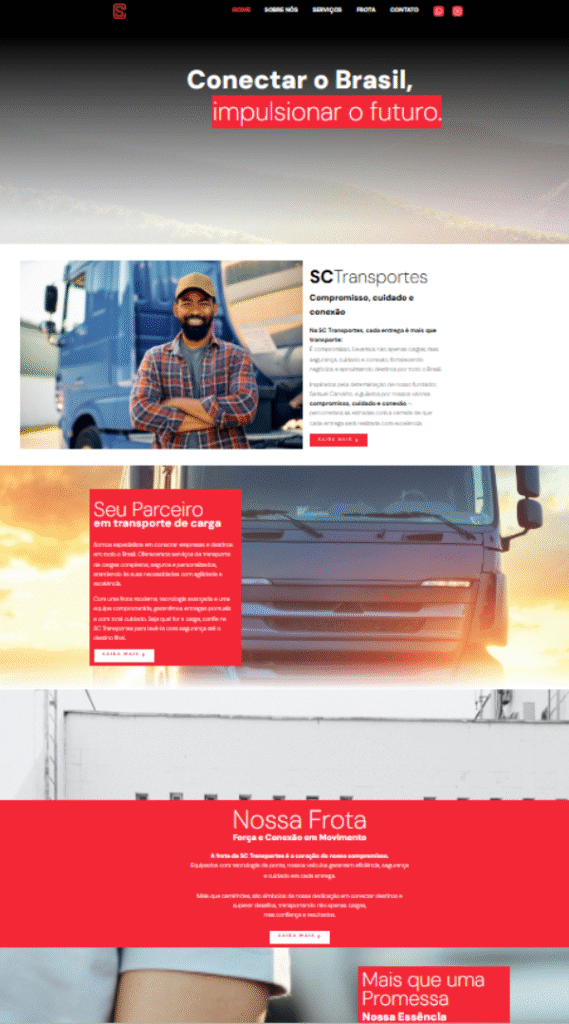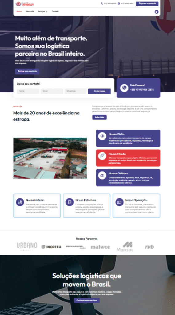 Somos especialistas em logística e marketing de transporte. Criamos sites que geram credibilidade, atraem embarcadores e fortalecem a presença digital da sua transportadora.